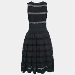 Alaia Blue Felt Knit Fit Flared Midi Dress S