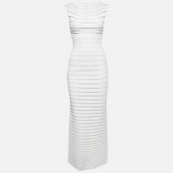 Alaia White Patterned Knit Sleeveless Flared Short Dress M