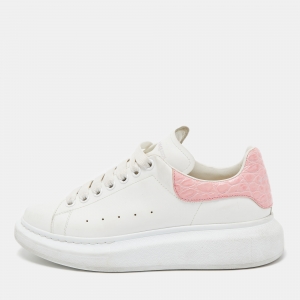 Pre Owned Alexander McQueen Black/White Leather and Suede Oversized Lace Up Sneakers Size 38