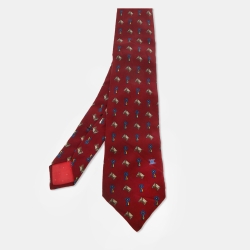 ربطة عنق سيلين مطبوع نقوش هندسية لشعار الماركة حرير عنابي