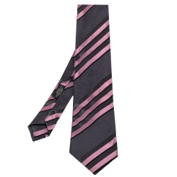 ربطة عنق برادا خطوط مائلة وردي ورصاصي