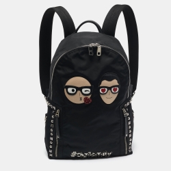 حقيبة ظهر دولتشي أند غابانا جلد ونايلون سوداء مرصعة تجميلية