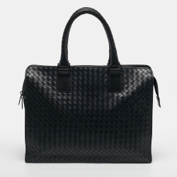 حقيبة عمل بوتيغا فينيتا جلد إنتريشياتو سوداء بسحاب