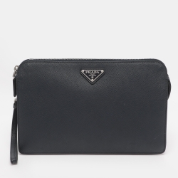 حقيبة كلتش معصم برادا جلد سافيانيو أزرق كحلي