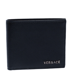محفظة فيرساتشي طية مزدوجة جلد سوداء
