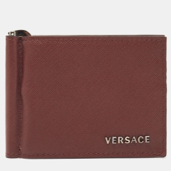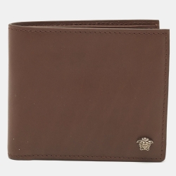 محفظة فيرساتشي جلد بني مزين ميدوسا ثنائية الطية