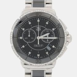 ساعة يد رجالية تاغ هوير فورمولا 1 كرونوغراف دياموند CAH1212 ستانلس ستيل سوداء مرصعة بالألماس 41 مم