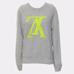 سويتر لويس فيتون رمادي فاتح مزين بشعار نيون أخضر مطرز صغير الحجم