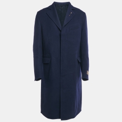 معطف لويس فيتون ذو وجه مزدوج من الفرو الصوفي أزرق بحري مزين بشعار كبير جدًا