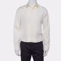 قميص غوتشي حرير كريمي سكيني بأزرار أمامية مقاس متوسط - ميديوم