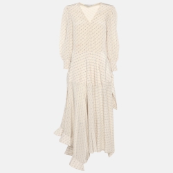 فستان ستيلا ماكارتني مارلي متوسط الطول بطبعة شعار أبيض مقاس صغير