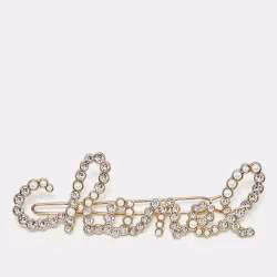 مشبك شعر شانيل بلورة بشعار الماركة لؤلؤ مزيف بذهب مات