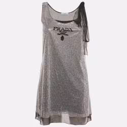 فستان قصير برادا بولياميد نايلون أسود بشعار مقاس إيطالي 36 للسيدات