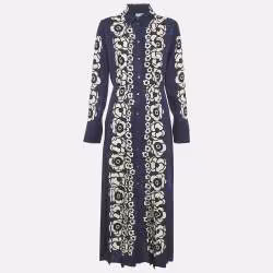 فستان برادا أزرق بحري بطبعة زهور حرير ساتان مطوي مقاس متوسط