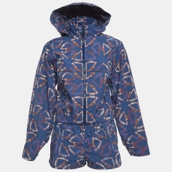طقم بنطلون و توب بلا حمالات هيرمس حرير مطبوع بأعلام بافيوا أزرق داكن M