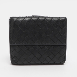 محفظة فرنسية بوتيغا فينيتا جلد إنتريشياتو أسود