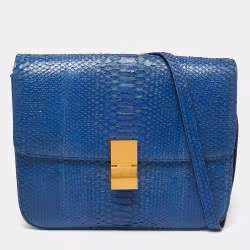 حقيبة كتف سيلين كلاسيك بوكس جلد ثعبان أزرق كبيرة