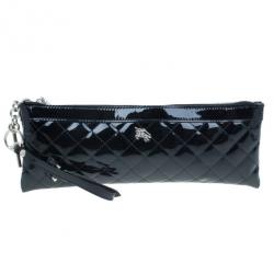 حقيبة كلتش للمعصم بربري مبطنة جلد لامع سوداء