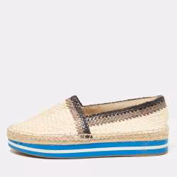 حذاء برادا فلات إسبادريل جلد منسوج كريمي/بني بدون أربطة مقاس 39