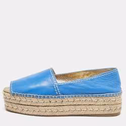 حذاء إسبادريل برادا جلد أسود مقدمة مفتوحة نعل سميك مقاس 39.5