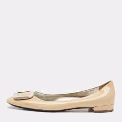 حذاء فلات باليرينا برادا جلد لامع بيج مقاس 39.5