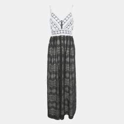 Badgley Mischka Black Embroidered Tulle Halter Neck Gown M