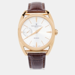 Bernhard H.Mayer Silver Rose Gold PVD Plated Stainless Steel Leather Mecanique BH30/CWR Men's Wristwatch 44 mm