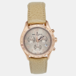 Bernhard H. Mayer Khaki Rose Gold PVD Plated Stainless Steel Leather Irish Chronograph Women's Wristwatch 38 mm