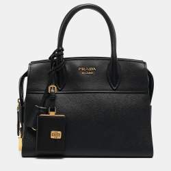 Prada Green/Cream Saffiano Patent Leather Studded Pyramid Frame Satchel