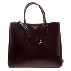 Prada Burgundy Saffiano Lux Leather Large Double Zip Tote
