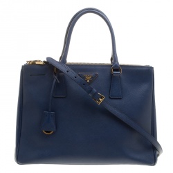 Prada Blue Saffiano Lux Leather Large Double Zip Tote