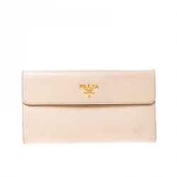 Prada Beige Saffiano Leather Zip Around Compact Wallet