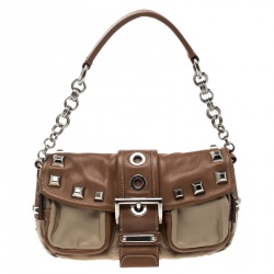 Prada Brown Ombre Glace Leather Zippers Bauletto Bag