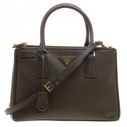 Prada Grey Saffiano Lux Leather Large Double Zip Tote