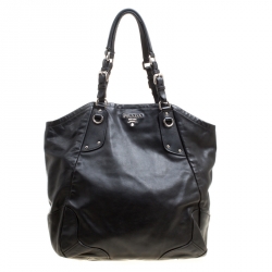 Prada Black Patent Spazzolato Leather Large Double Zip Tote