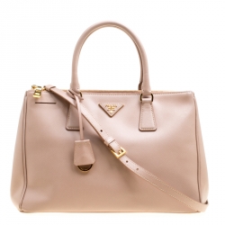 Prada Blush Pink Saffiano Lux Leather Mini Double Zip Top Handle Bag