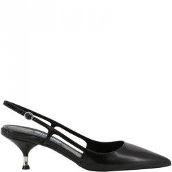 Prada Black Patent Leather Embellished Square Toe Pumps Size 37.5