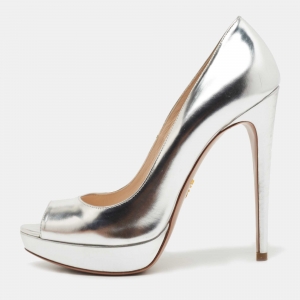 Prada Pink/White Leather Open Toe Platform Espadrilles Size 36