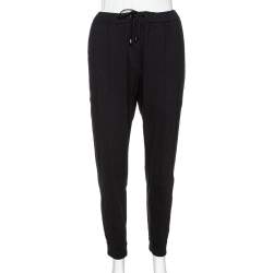 Brunello Cucinelli Black Wool Lurex Trim Elasticized Waist Detail Pants S