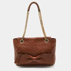 Carolina Herrera Brown Leather Lock Charm Crossbody Bag
