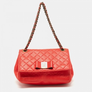 Carolina Herrera Red Monogram Embossed Leather Bow Bucket Shoulder Bag