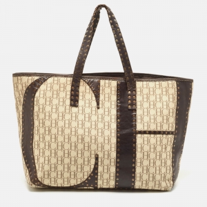 Carolina Herrera Brown Monogram Leather Tote