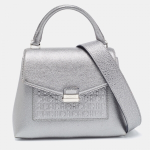 Carolina Herrera Purple Monogram Embossed Leather Top Handle Bag