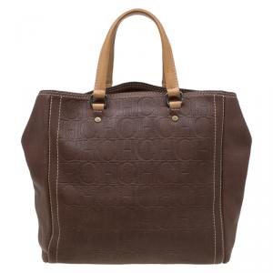 Carolina Herrera Brown Monogram Leather Shoulder Bag
