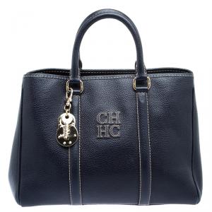 Carolina Herrera Navy Blue Monogram Leather Andy Boston Bag