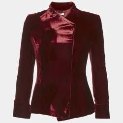 Carolina Herrera Red Gabardine Lace Detail Cropped Jacket L