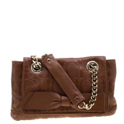 Carolina Herrera Bronze Monogram Leather Audrey Shoulder Bag
