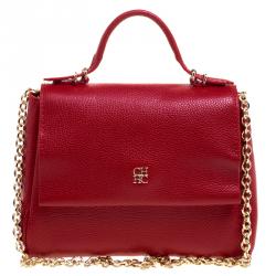 Carolina Herrera Red La Place Vendome Embossed Leather Tote