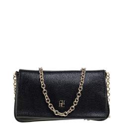 Carolina Herrera Black Leather Flap Shoulder Bag