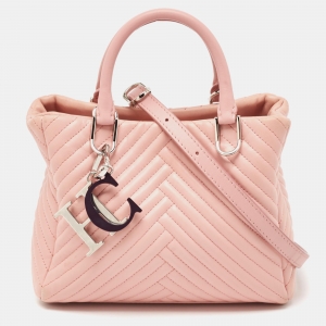 Carolina Herrera Pink/Beige Monogram Embossed Leather Andy Tote